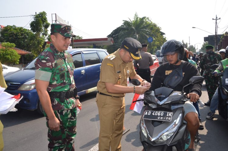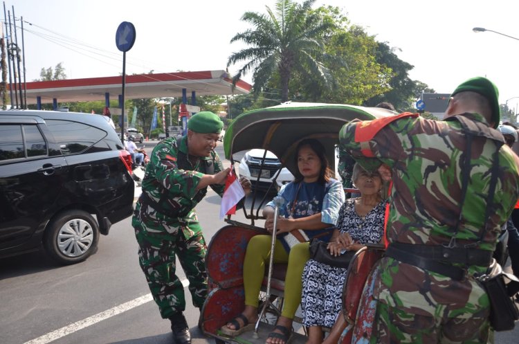 Komandan Kodim 0735 Surakarta bersama Forkopimda membagikan 300 bendera merah putih kepada warga, menyemarakkan HUT ke-80 RI, menumbuhkan nasionalisme dan cinta tanah air di Kota Surakarta.