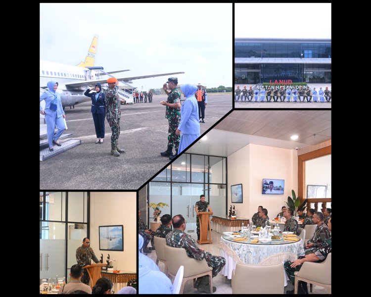 LINTASTIMURMEDIA.COM – MAKASSAR – Komandan Pangkalan Udara (Danlanud) Sultan Hasanuddin, Marsma TNI Arifaini Nur Dwiyanto, M.Han., bersama Ketua PIA Ardhya Garini (PIA AG) Cabang 7/D.II Lanud Sultan Hasanuddin, Ny. Betty Arifaini Nur Dwiyanto, secara resmi menyambut kedatangan Panglima Korps Pasukan Gerak Cepat (Pangkorpasgat), Marsdya TNI Deny Muis, beserta Ketua PIA AG Gabungan Korpasgat dan rombongan di Baseops Lanud Sultan Hasanuddin, Makassar, Kamis (28/8/2025).