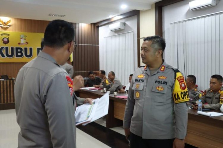 Rapat kesiapan Polres Kubu Raya dalam pengamanan pemungutan suara di TPS wilayah Hukum Polres Kubu Raya dipimpin langsung Kapolres Kubu Raya AKBP Wahyu Jati Wibowo, S.I.K.,S.H.,M.H yang didampingi Wakapolres Kubu Raya Kompol Hilman Malaini, S.H., S.I.K, dan Kabag Ops Polres Kubu Raya AKP Much Shofian, S.AP, M.AP dan diikuti seluruh Kapolsek, Kasium dan Kanit Intel Jajaran Polres Kubu Raya.