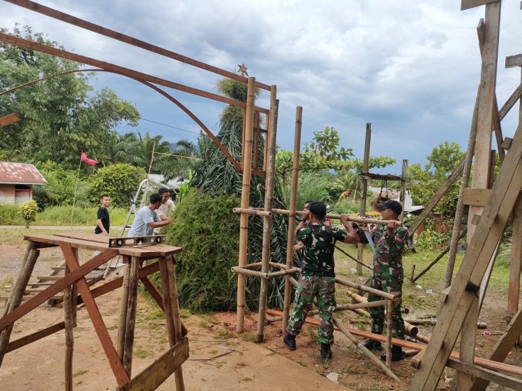 LINTASTIMURMEDIA.COM - Kalbar - Kegiatan karya bhakti di Gereja Sta. Thesia, Stasi dilaksanakan dalam rangka menyambut Hari Raya Natal pada 25 Desember 2023, kegiatan karya bakti ini dipimpin langsung oleh Wadan Pos Segumun Serda Taufik Kamrul bersama 2 orang personel, Karya bakti dilaksanakan di Dsn Segumun, Kecamatan Sekayam, Kabupaten Sanggau (24/12/23)