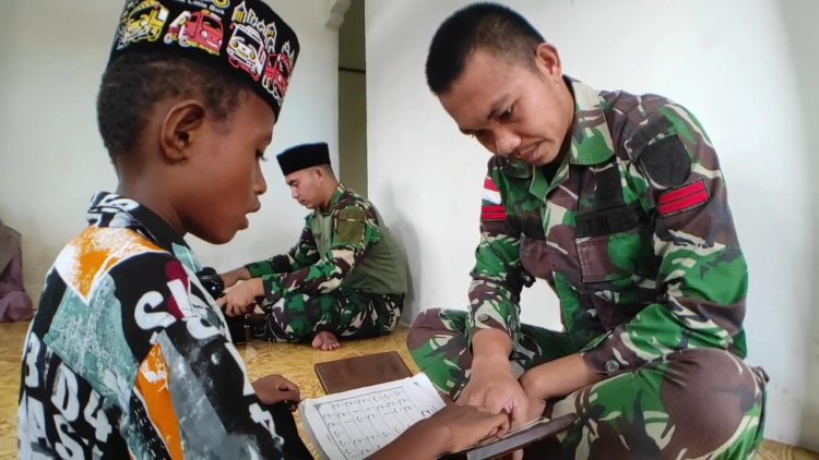 Satgas 642 Bantu Anak Papua Mengaji di Kaimana
