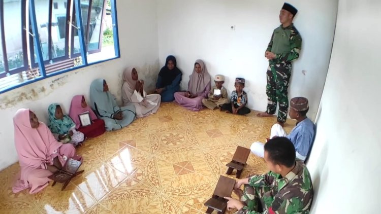 Satgas Yonif 642/Kps mengajar mengaji dan menyerahkan 20 Al-Qur’an untuk anak-anak TPQ An-Nur di Kampung Warwasi, Kaimana, Papua Barat, sebagai wujud kepedulian pendidikan dan pembinaan akhlak generasi muda Papua.