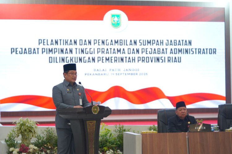“Kita semua mengetahui visi pembangunan Riau 2025–2030 adalah Riau Bedelau. Untuk mencapainya, seluruh pejabat harus menjadi motor penggerak perubahan birokrasi,” jelasnya.