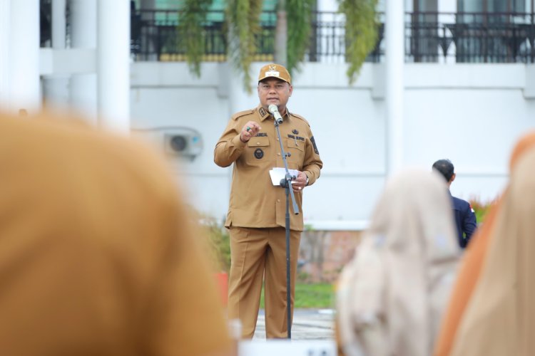 Wakil Bupati Siak Syamsurizal memimpin apel pagi perdana dan menyampaikan komitmen menyelesaikan tunda bayar Rp300 miliar pada 2025, termasuk hak ASN dan pihak ketiga.