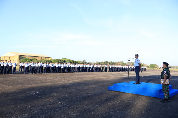 LINTASTIMURMEDIA.COM - MAKASSAR - Apel Khusus di Lanud Sultan Hasanuddin: Komandan Tekankan Pentingnya Prajurit Memahami Situasi, Komandan Lanud (Danlanud) Sultan Hasanuddin, Marsma TNI Bonang Bayuaji G., S.E., M.M., CHRMP., memimpin apel khusus yang dihadiri seluruh prajurit Lanud Sultan Hasanuddin, termasuk Perwira, Bintara, Tamtama, dan Aparatur Sipil Negara (ASN). Apel berlangsung di Appron Galaktika Lanud Sultan Hasanuddin, Makassar, Sulawesi Selatan, pada Senin (15/7/2024).