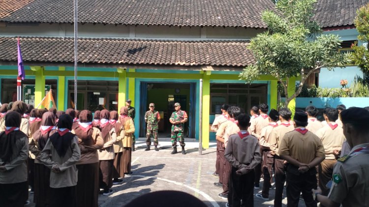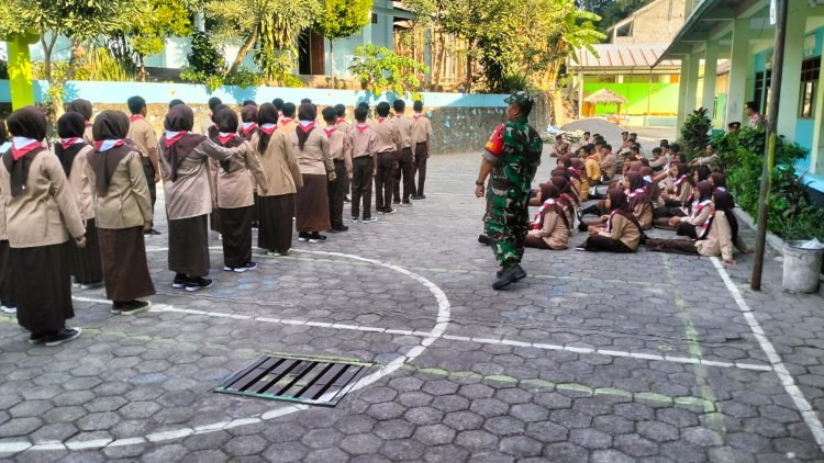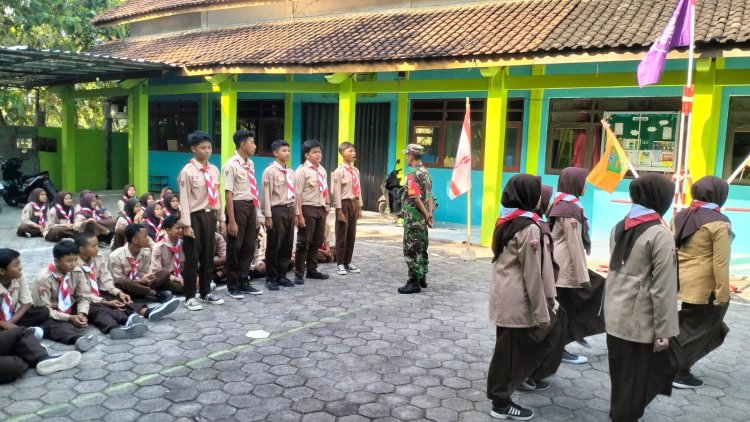 Babinsa Andong Tanamkan Rasa Cinta Tanah Air Sejak Dini Melalui Latihan Pramuka