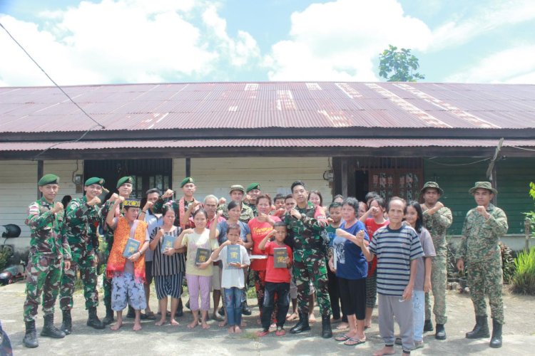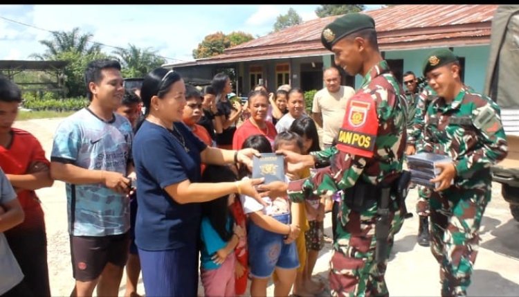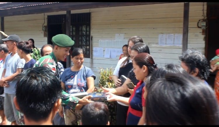 LINTASTIMUTMEDIA.COM - Kalbar - Rayakan Natal di Perbatasan, Satgas Pamtas RI - Malaysia Yonarmed 10/ Bradjamusti Kostrad membagikan bantuan Alkitab dari Pangkostrad, Letjen TNI Muhammad Saleh Mustafa untuk masyarakat di Perbatasan RI - Malaysia Pada Momen Natal 2023 di Perbatasan RI - Malaysia , Kalbar. Rabu (27/12/2023).