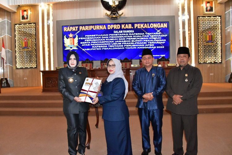 LINTASTIMURMEDIA.COM - JATENG - KAJEN – Bupati Pekalongan Fadia Arafiq menghadiri rapat paripurna Dewan Perwakilan Rakyat Daerah (DPRD) Kabupaten Pekalongan dalam rangka persetujuan bersama antara Bupati Pekalongan dengan pimpinan DPRD Kabupaten Pekalongan berkaitan dengan Raperda tentang Pencegahan dan Peningkatan Kualitas Perumahan Kumuh dan Permukiman Kumuh, Selasa (19/09/2023) pagi.