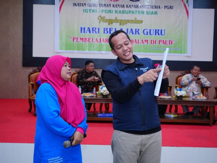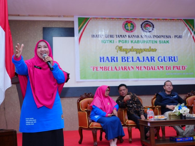 LINTASTIMURMEDIA.COM - SIAK – Dalam rangka memperkuat kualitas pendidikan anak usia dini di Kabupaten Siak, Ikatan Guru Taman Kanak-Kanak Indonesia (IGTKI) PGRI Kabupaten Siak menggelar kegiatan Hari Belajar Guru bertema “Pembelajaran Mendalam di PAUD”. Acara yang berlangsung pada Sabtu (26/7/2025) ini dipusatkan di Gedung Mahratu Siak dan dihadiri oleh ratusan guru TK dari berbagai kecamatan.