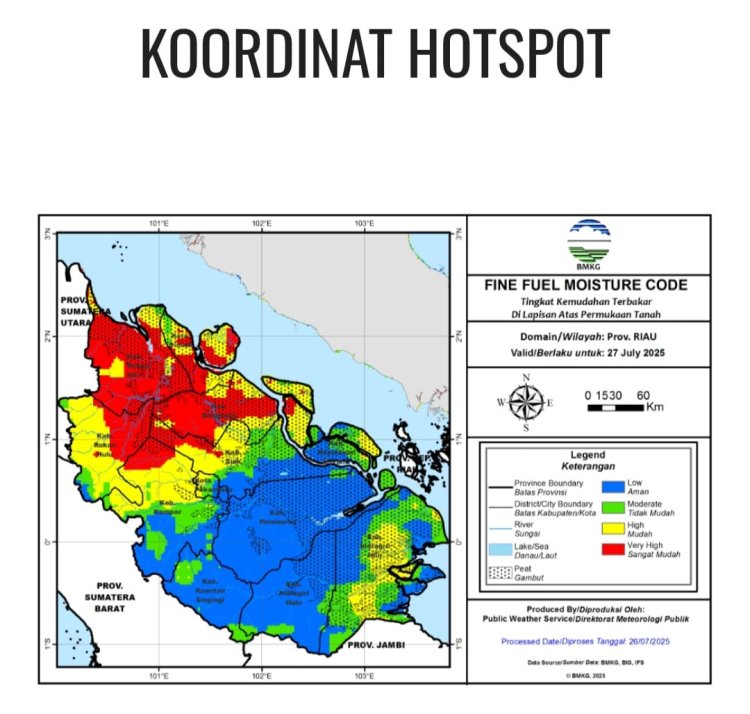 Berdasarkan data terbaru dari Badan Meteorologi, Klimatologi, dan Geofisika (BMKG) Stasiun Pekanbaru, keempat titik panas tersebut berada di Kabupaten Pelalawan (tiga titik) dan Kabupaten Siak (satu titik). Jumlah ini tergolong sangat rendah jika dibandingkan dengan wilayah lain seperti Sumatera Selatan yang mencatat 50 titik, serta Aceh dengan 47 titik.