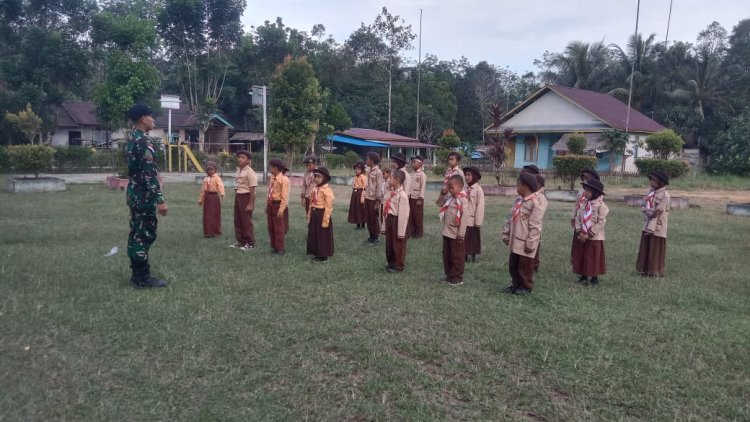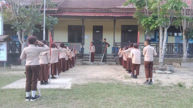 Selain memberikan semangat dalam belajar, Personel Pos Sentabeng yang dipimpin oleh Wadanpos Serda Angga Septyan juga memberikan pembekalan baris-berbaris dan motivasi kepada siswa-siswi SDN 15 Sentabeng tersebut.