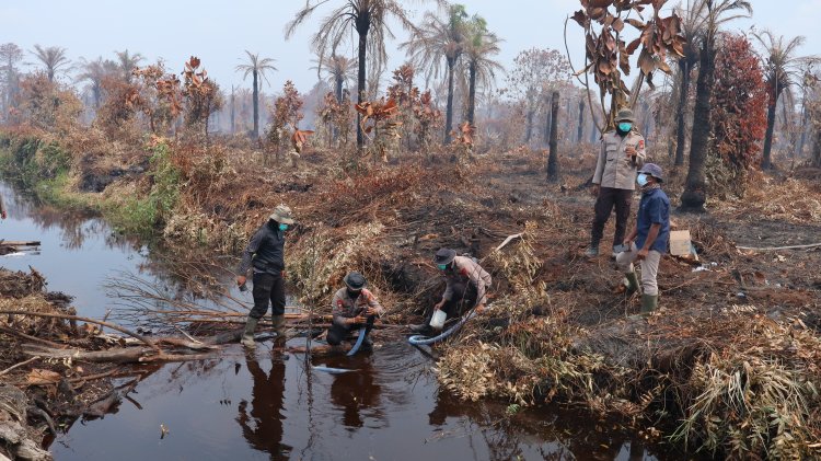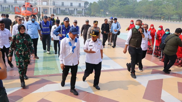Menteri LHK Hanif Faisol Nurofiq meninjau langsung lokasi karhutla di Rohil. Upaya pemadaman dilakukan melalui penyemaian garam dan rencana water bombing bersama BNPB dan Pemkab.