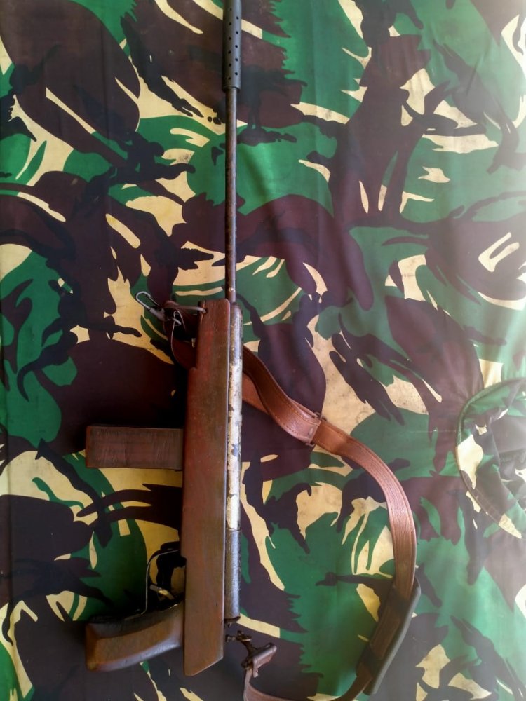 "Satu pucuk senjata api rakitan jenis Lantak (Bowman) Kaliber 12 mm di serahkan warga Desa Senaning atas nama A (53) kepada Pabintal Satgas Pamtas RI-Mly Yonarmed 10/ Bradjamusti Letda Arm Agung Triyachin dan Praka Rapiansyah di Pos Kout," ujar Dansatgas.