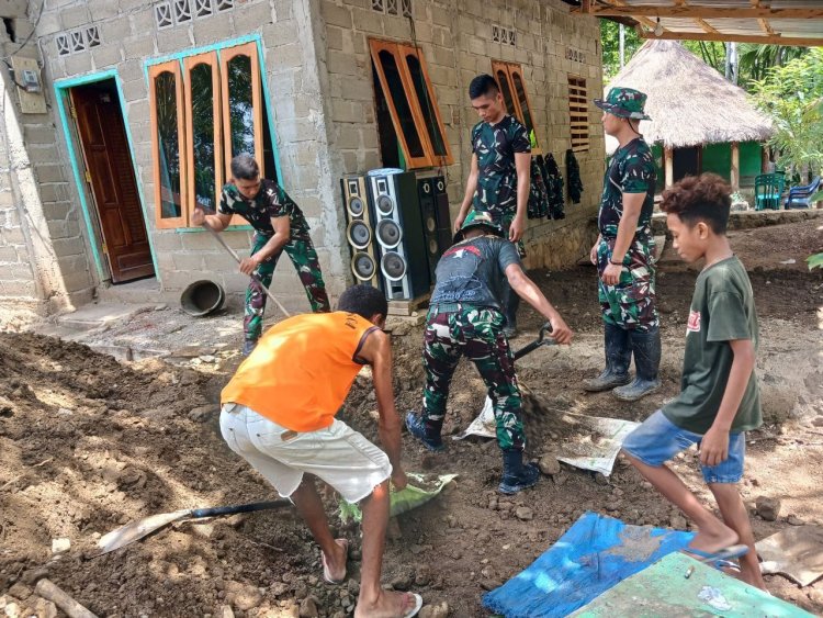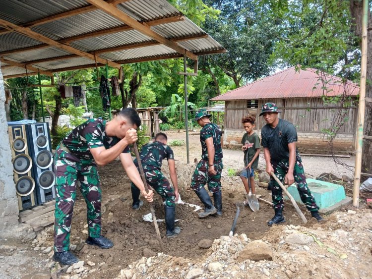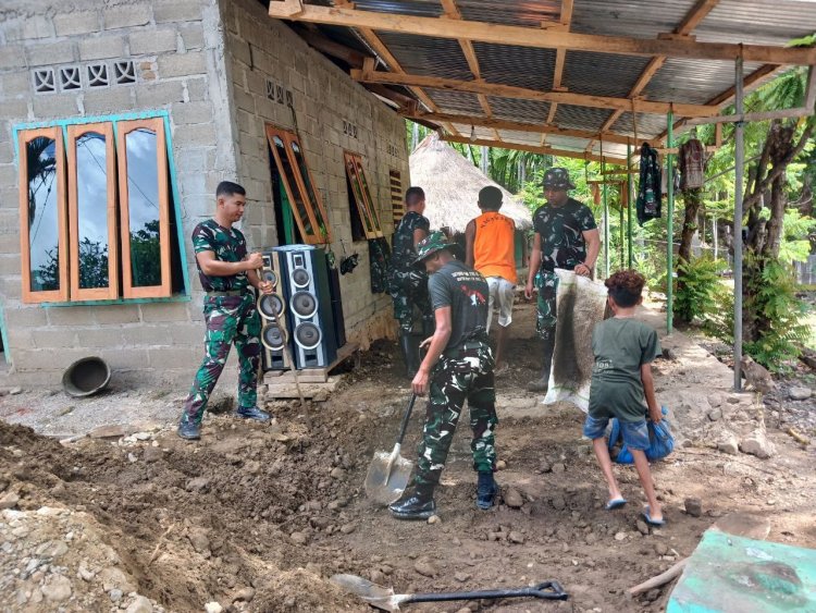 LINTASTIMURMEDIA.COM - Manamas,NTT - Bantu perbaiki Rumah Masyarakat, Pos Manamas Satgas Yonkav 6/Naga Karimata Perbantukan Personel dalam mempercepat pembangunan rumah Bpk. Maxi Keno bertempat di Desa Manamas, Kec. Naibeno, Kab. TTU, Prov.NTT. (6/1/24)