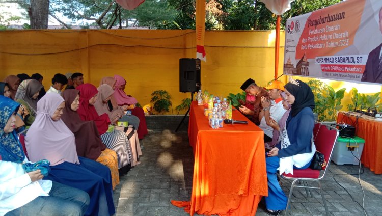 LINTASTIMURMEDIA.COM - PEKANBARU-- Agar masyarakat lebih mengetahui terkait Peraturan Daerah (Perda) yang ada di Kota Pekanbaru, Ketua DPRD Kota Pekanbaru M Sabarudi ST melaksanakan Sosialisasi perda di daerah pemilihannya. Kegiatan ini dilaksanakan di Jalan Kenanga RT 01 RW 02, Kelurahan Mentangor, Kecamatan Kulim, pada Sabtu (16/9/2023).