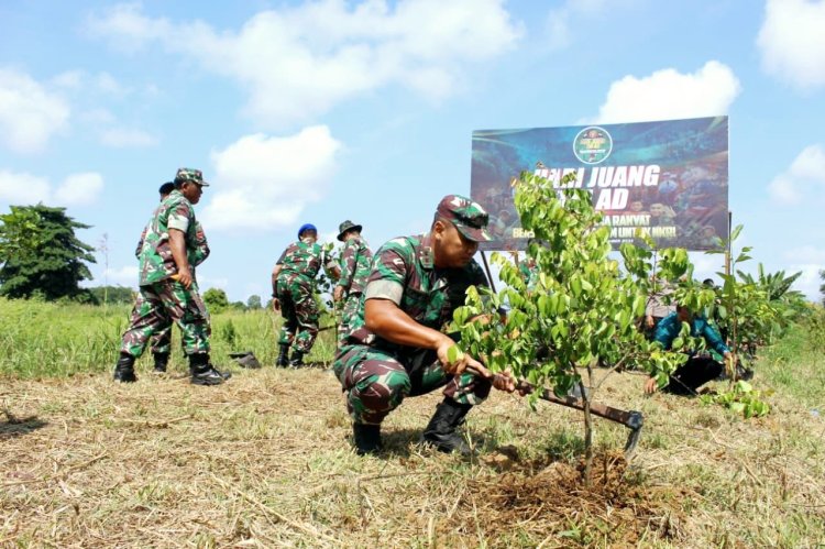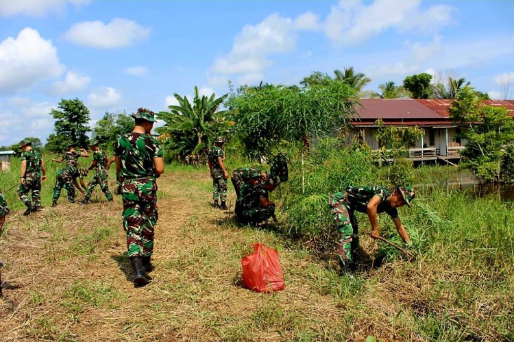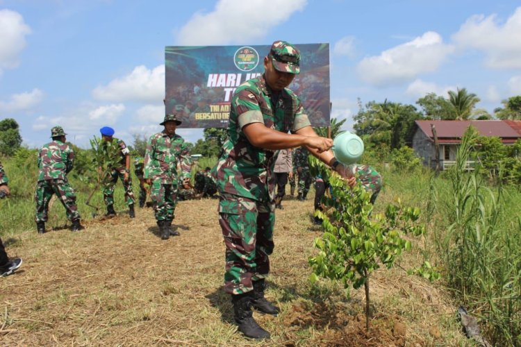 LINTASTIMURMEDIA.COM - Barito Selatan - Kodim 1012/Buntok Melaksanakan Penanaman Pohon dan pembersihan serentak jajaran untuk peringati Hari Juang TNI AD Ke-78 "TNI AD Bersama Rakyat Bersatu Dengan Alam Untuk NKRI", bertempat di Jelapat Kecamatan Dusun Selatan Kabupaten Barito Selatan, Provinsi Kalimantan Tengah, pada hari Kamis (14/12/2023).
