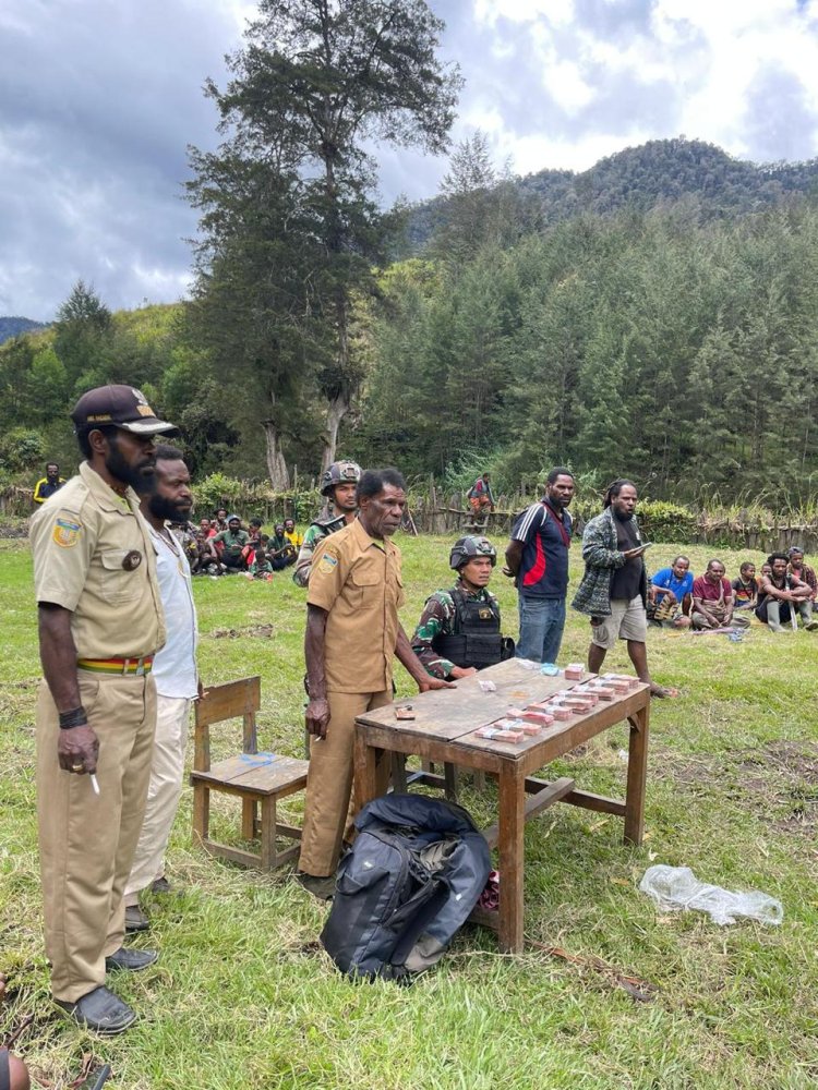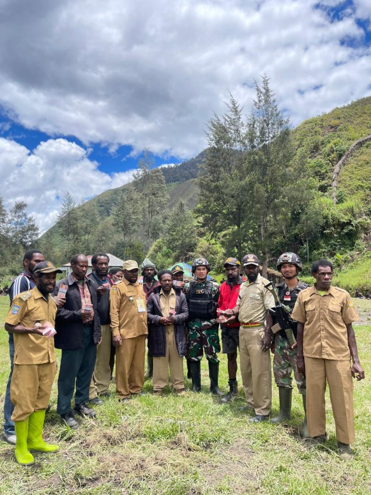 LINTASTIMURMEDIA.COM - Amangi, Papua - Personil Satuan Tugas (Satgas) Mobile Raider 300 Siliwangi berhasil meredakan konflik yang hampir memicu pertumpahan darah antara warga di Kampung Amungi, Distrik Ilaga Utara, KB.Puncak, Papua. Peristiwa ini terjadi pada hari Rabu, tanggal 20 September 2023, pukul 12:05 WIT.