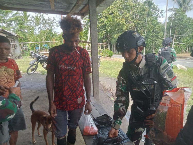 LINTASTIMURMEDIA.COM -;Kabupaten Keerom - Upaya meningkatkan perekonomian masyarakat di wilayah perbatasan Papua melaui ketahanan pangan, Pos Ampas membagikan bibit jagung kepada masyarakat Kampung Ampas, Distrik Waris, Kabupaten Keerom, Papua, (08/01/2024).