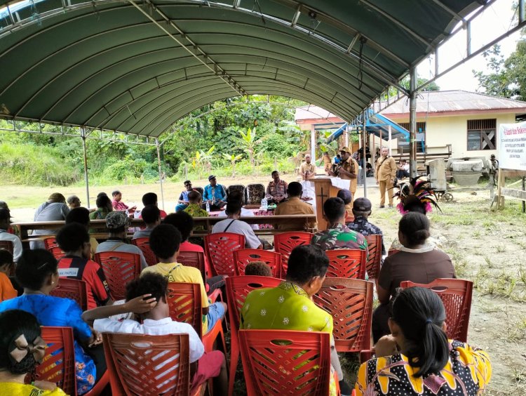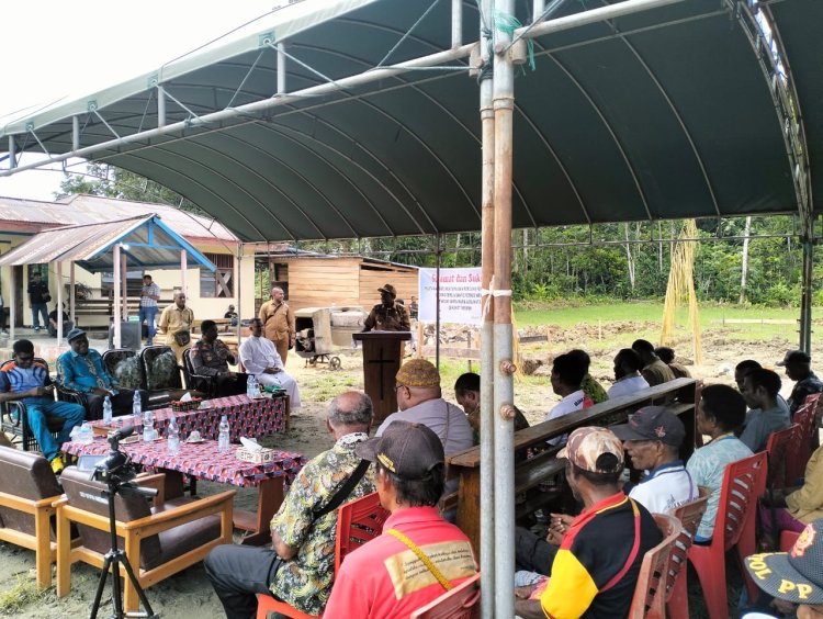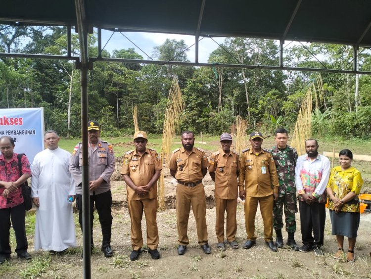 LINTASTIMURMEDIA.COM - Keerom - Satuan Tugas Pengamanan Perbatasan RI-PNG Sektor Utara Yonif 122/TS, yang berada di bawah naungan Korem 172/PWY Pos Wembi melaksanakan bersama pemerintah Kabupaten Keerom melaksanakan kegiatan peletakan batu pertama, bertempat di kampung Wembi, Distrik Mannem, Kabupaten Keerom, Selasa (26/09/2023)