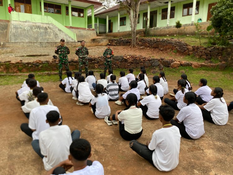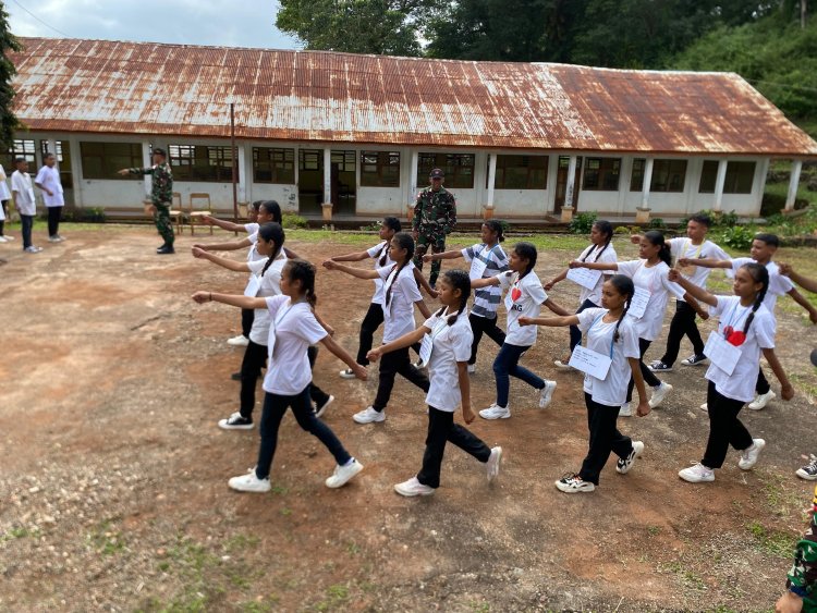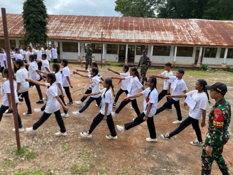 LINTASTIMURMEDIA.COM - Satgas Yonkav 6/Naga Karimata Mengajarkan PBB dalam MPLS di SMK Pertanian Suanae: Meningkatkan Keterampilan Siswa. Suanae, NTT - Dalam rangka Masa Pengenalan Lingkungan Sekolah (MPLS), Satgas Yonkav 6/Naga Karimata memberikan pelatihan Peraturan Baris-Berbaris (PBB) kepada siswa baru SMK Pertanian di Desa Suanae, Kecamatan Miomaffo Barat, Kabupaten TTU, Provinsi NTT pada 20 Juli 2024.
