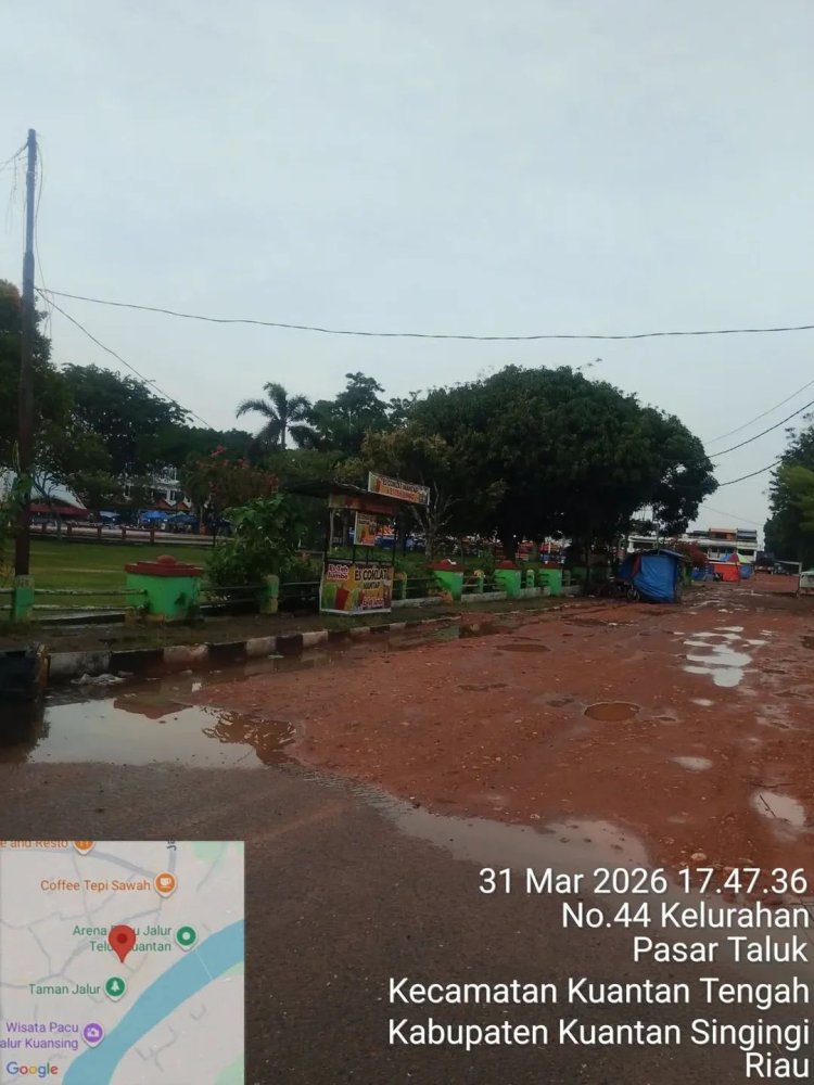 Kondisi Taman Jalur Teluk Kuantan dikeluhkan warga karena becek saat hujan dan berdebu saat panas menjelang pembukaan MTQ. Masyarakat berharap segera ada perbaikan.
