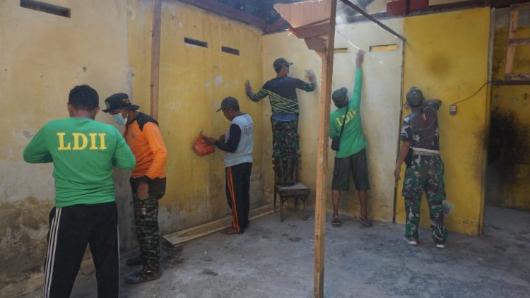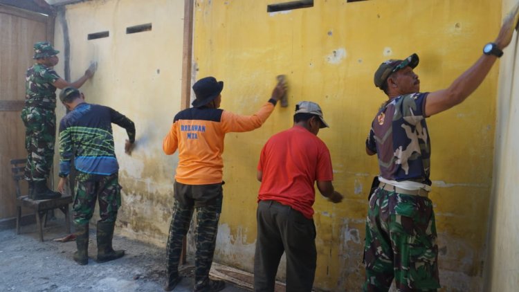 Meski hari libur, Satgas TMMD Reguler Ke-125 Kodim 0735/Surakarta tetap giat perbaiki saluran air dan renovasi RTLH di Karangasem, Surakarta.