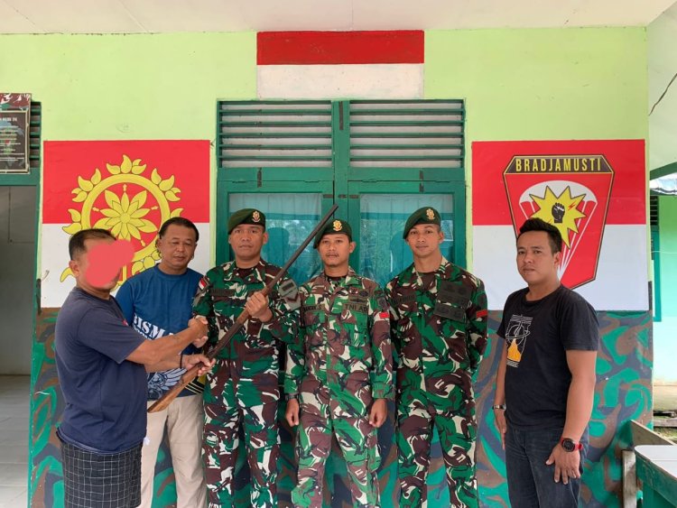 LINTASTIMURMEDIA.COM - SANGGAU - Hubungan baik antara anggota Satgas Pamtas RI–Malaysia Yonarmed 10 Kostrad dan masyarakat sekitar menghasilkan kepercayaan dengan penyerahan sukarela satu pucuk senjata api rakitan laras panjang ke Pos Sei Tekam, Desa Sei Tekam, Kecamatan Sekayam, Kabupaten Sanggau, Kalimantan Barat, pada Selasa (24/01/2024).