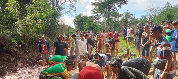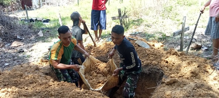 LINTASTIMURMEDIA.COM - Sanggau - Satgas Pamtas RI-Malaysia Yonarmed 10/ Bradjamusti Pos Sei Beruang membantu proses pemakaman jenazah almarhum Kalia (40) warga Dusun Sei Beruang, Kecamatan Sekayam, Kabupaten Sanggau, Kalimantan Barat.
